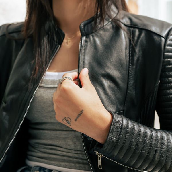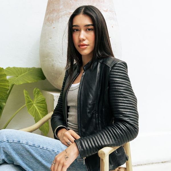 La chamarra Ashley combina elegancia casual con un diseño pensado para destacar. Su corte entallado y los resortes en los costados realzan la silueta de manera natural, mientras que las costuras en las mangas aportan un toque moderno y sofisticado que no pasa desapercibido.