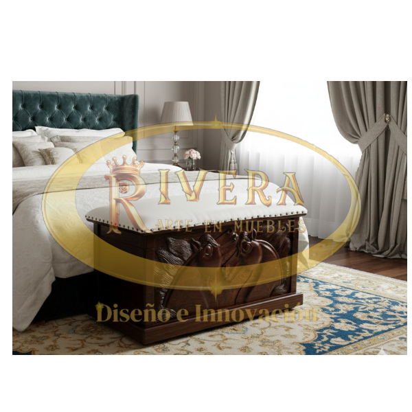 Elegante Baúl de Pie de Cama modelo Caballos